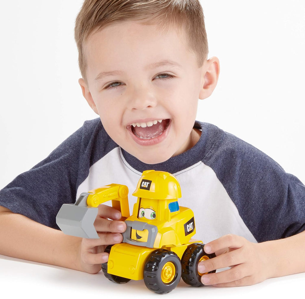 The 7” CAT Construction Pals are designed to make learning intuitive and fun as they develop your child’s fine motor skills. With a press of the helmet each vehicle springs to life with an animated face and Kid-Vroom Sounds™ that your child will love! Watch their curiosity grow as they press the helmet again and again to see the pals’ expressions change along with activating seven unique Kid-Vroom Sounds™! Real CAT machines are known for their high quality; these toys are no different; built to withstand the tough demands of rugged play these vehicles will be your child’s go-to toy. Appropriate for ages 2 years and up.