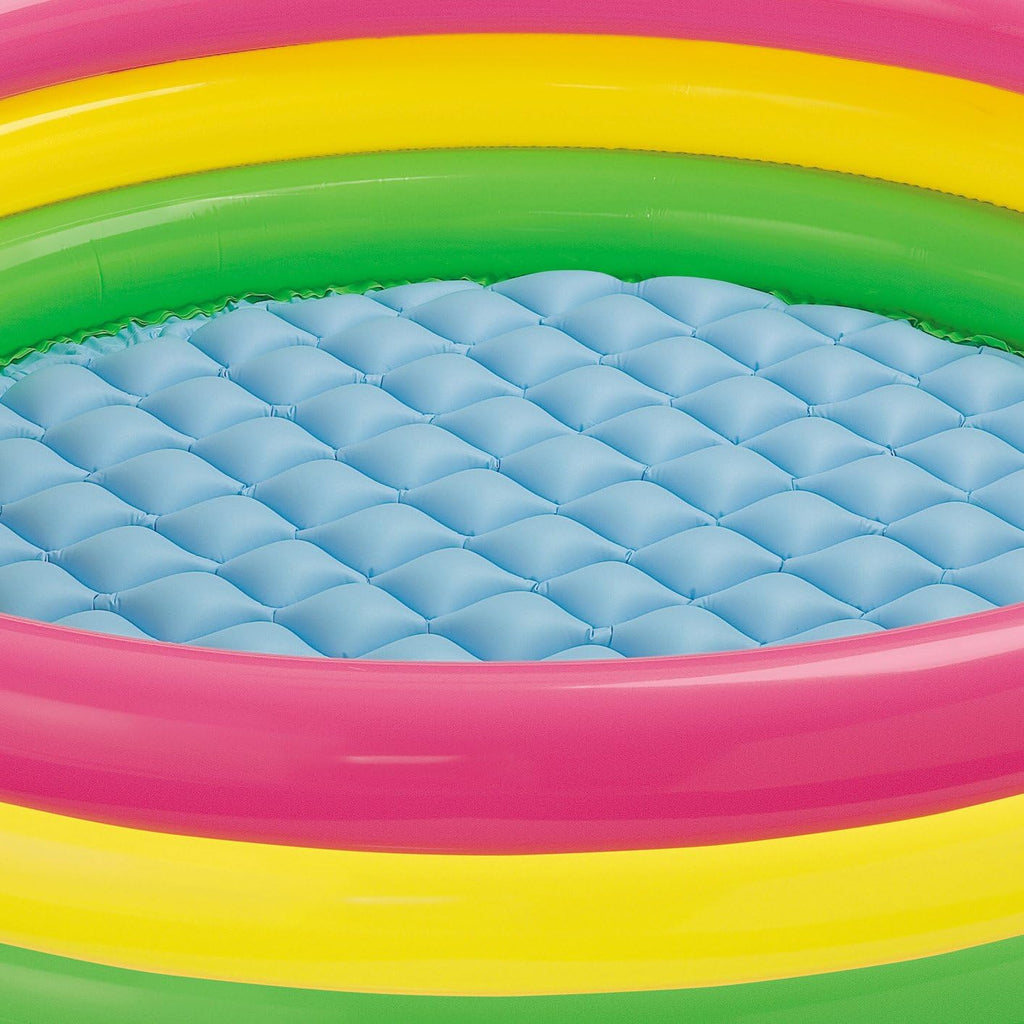 The Intex Sunset Glow Kiddie Pool is perfect for the kids who like to go underwater. Designed with 3 bright, colorful rings and a comfy inflatable floor, it sets up easily in the backyard for loads of splash-filled fun.
